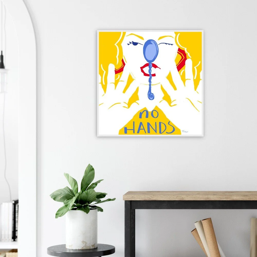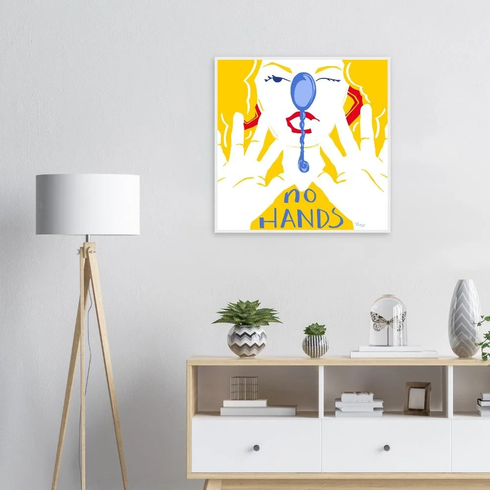 "No Hands" White Wooden Framed Print - Multiple sizes