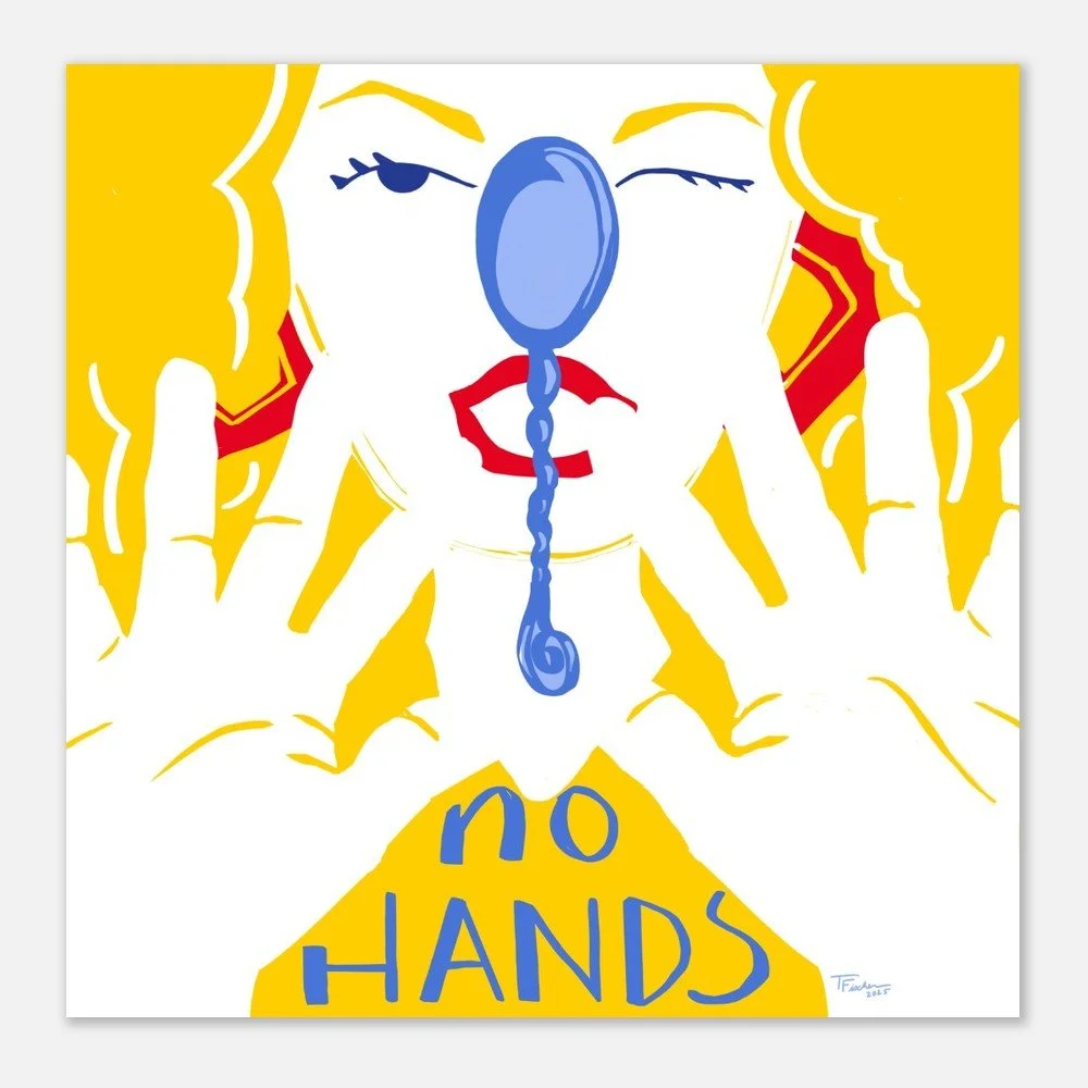 Inspired by a friend’s goofy dinner party tricks, this was a fun project when prompted to illustrate a spoon. I chose a simple color palette to achieve a paper-cut-out look. This print is a fun addition to a modern kitchen or dining room.